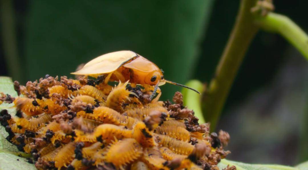 龟甲虫的妈妈指挥孩子一起挥舞屁股上的粪便......