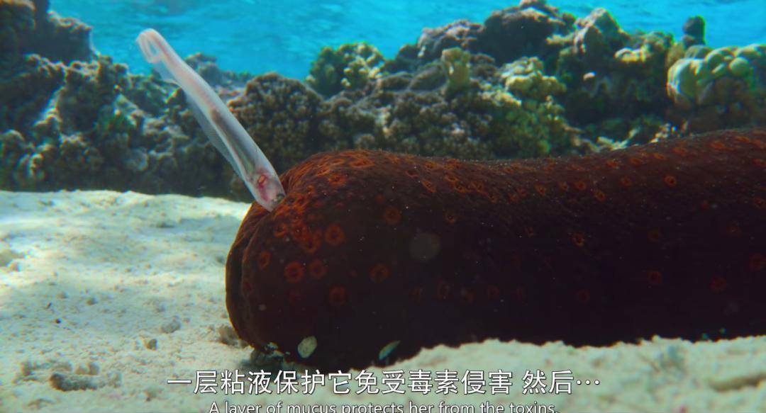 比如这条隐鱼,为了躲避天敌,要钻入某只海参的菊花……